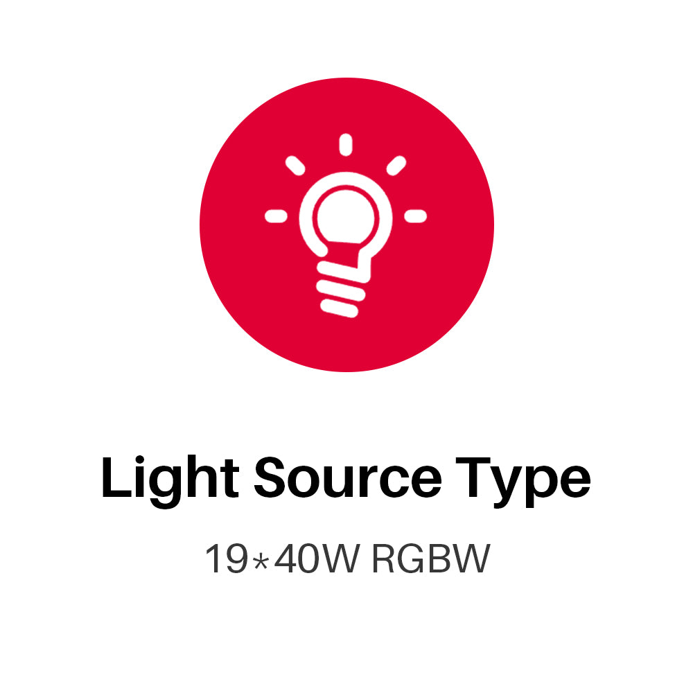 - Type: 19×40W high-power RGBW 4-in-1 LEDs
