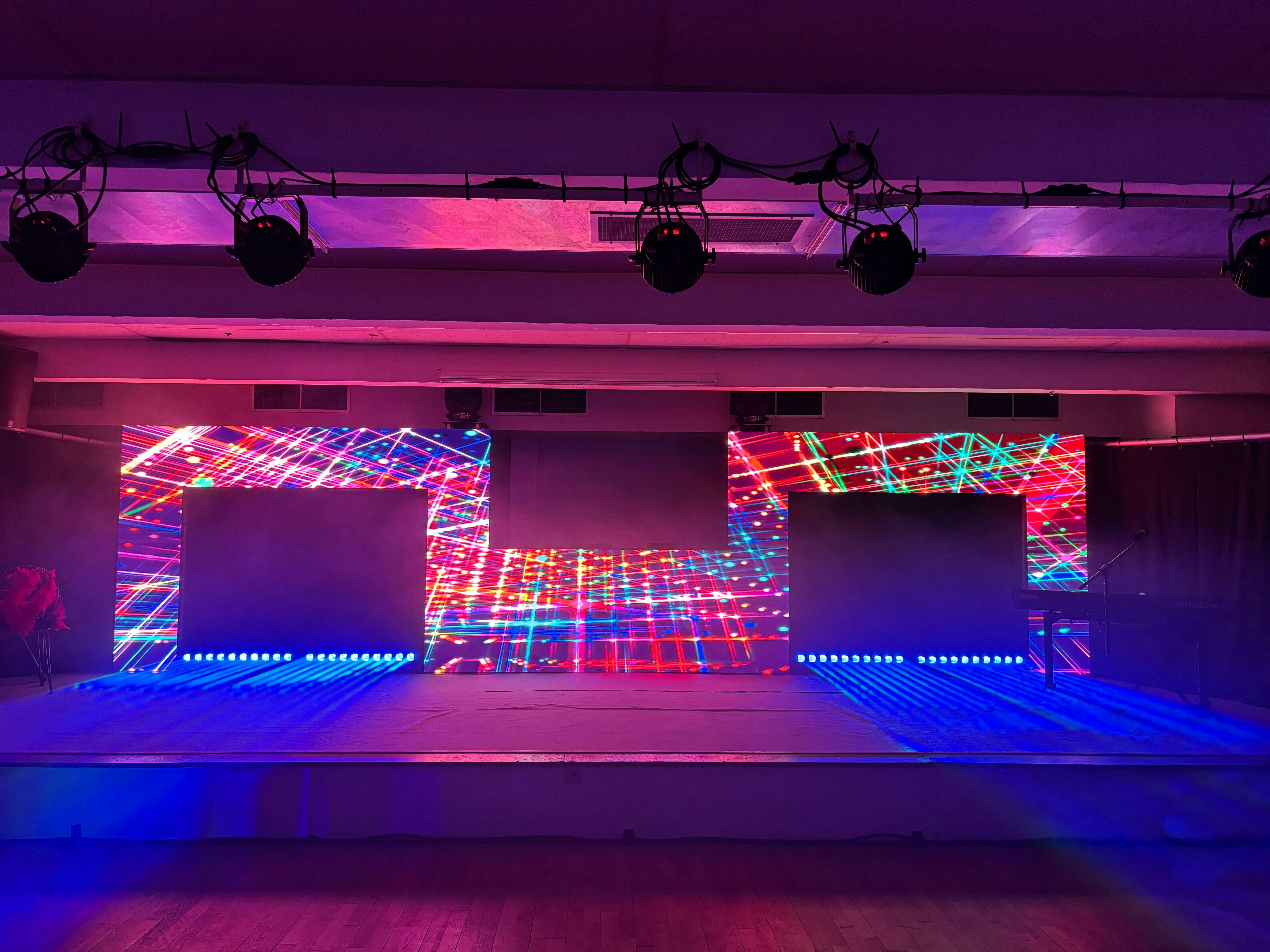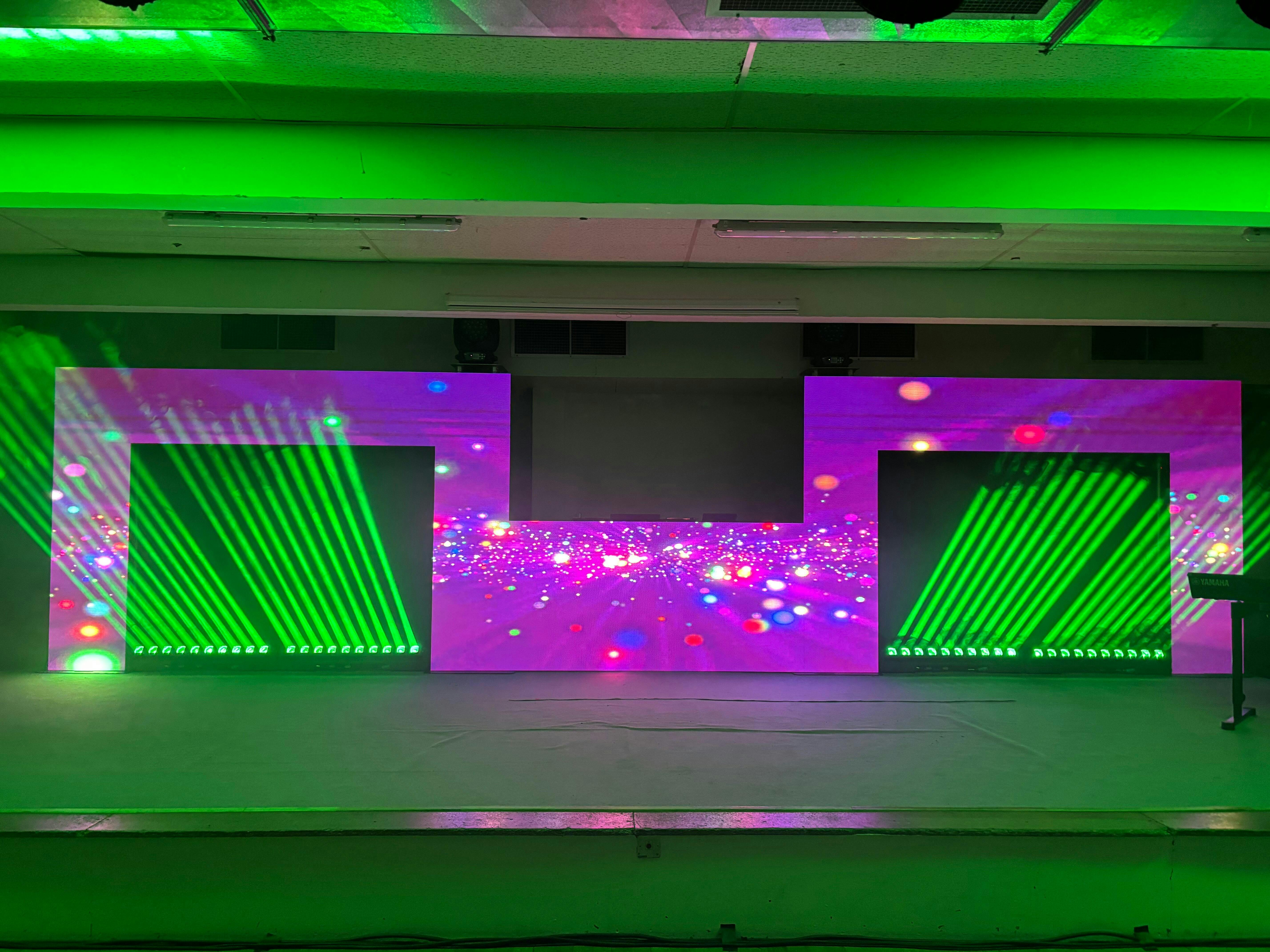 This is an intentional optical design choice. Our beam fixtures use four separated RGBW LED sources to maximize brightness and spatial light intensity. By not forcing the beams to blend into a single point, we preserve over 60% more output power, resulting in sharper, stronger beams in mid-air and long-distance applications.