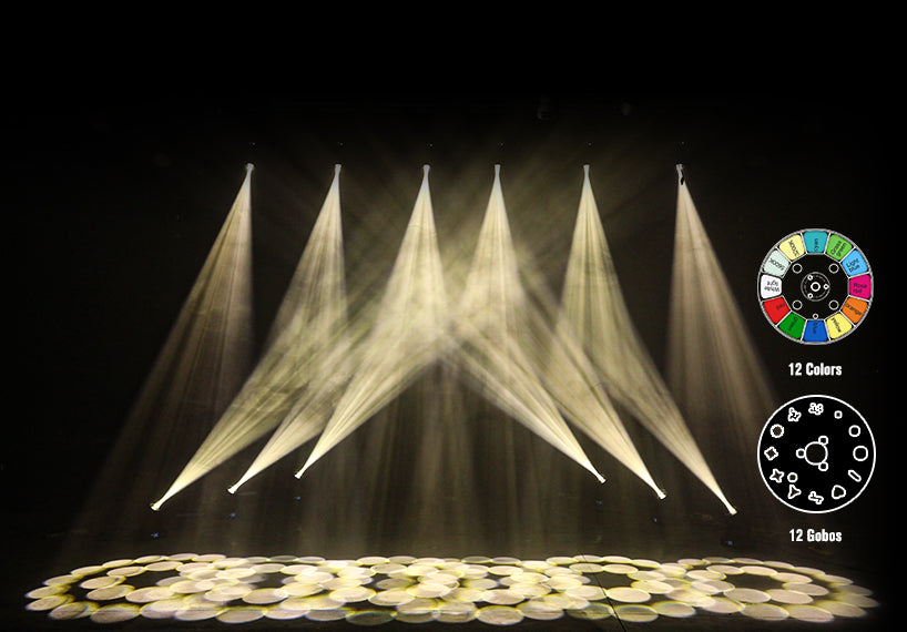 1 fixed gobo wheel: 11 gobos +open, with gobo shaking and arbitrary gobo positioning functions.