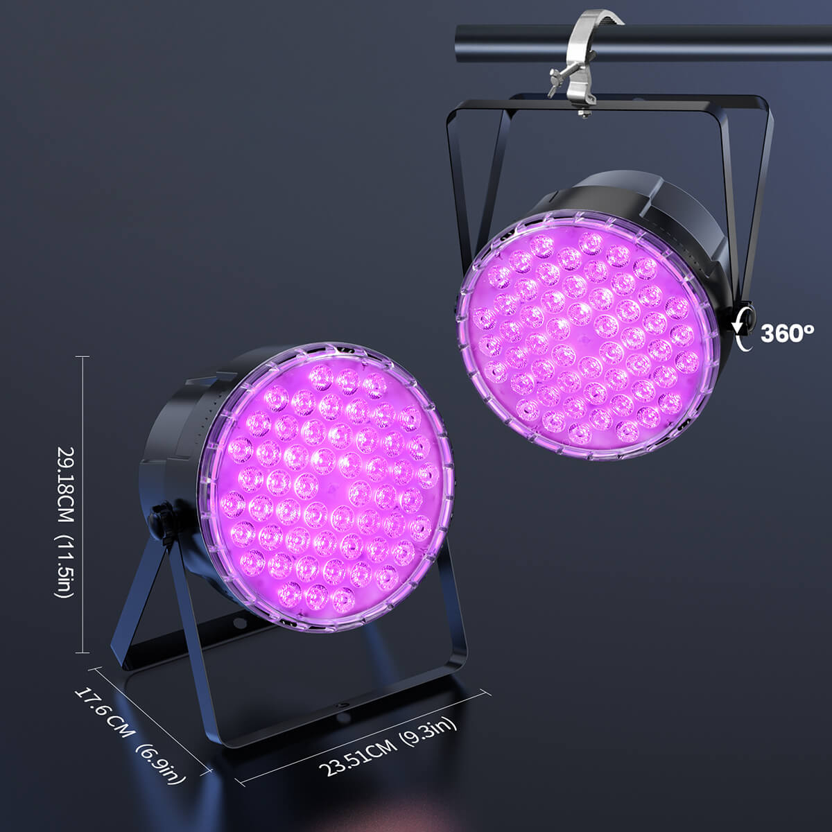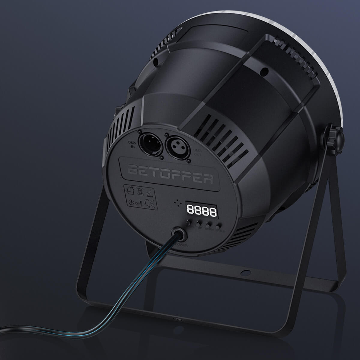 Supports DMX512, Auto, Sound-Active, and Master/Slave modes. With 3CH & 7CH channels, you can control dimming, color, strobe, macro effects, and speed. Multiple units sync via Master/Slave, while built-in Auto and Sound modes enable quick plug-and-play for weddings, parties, and small shows.