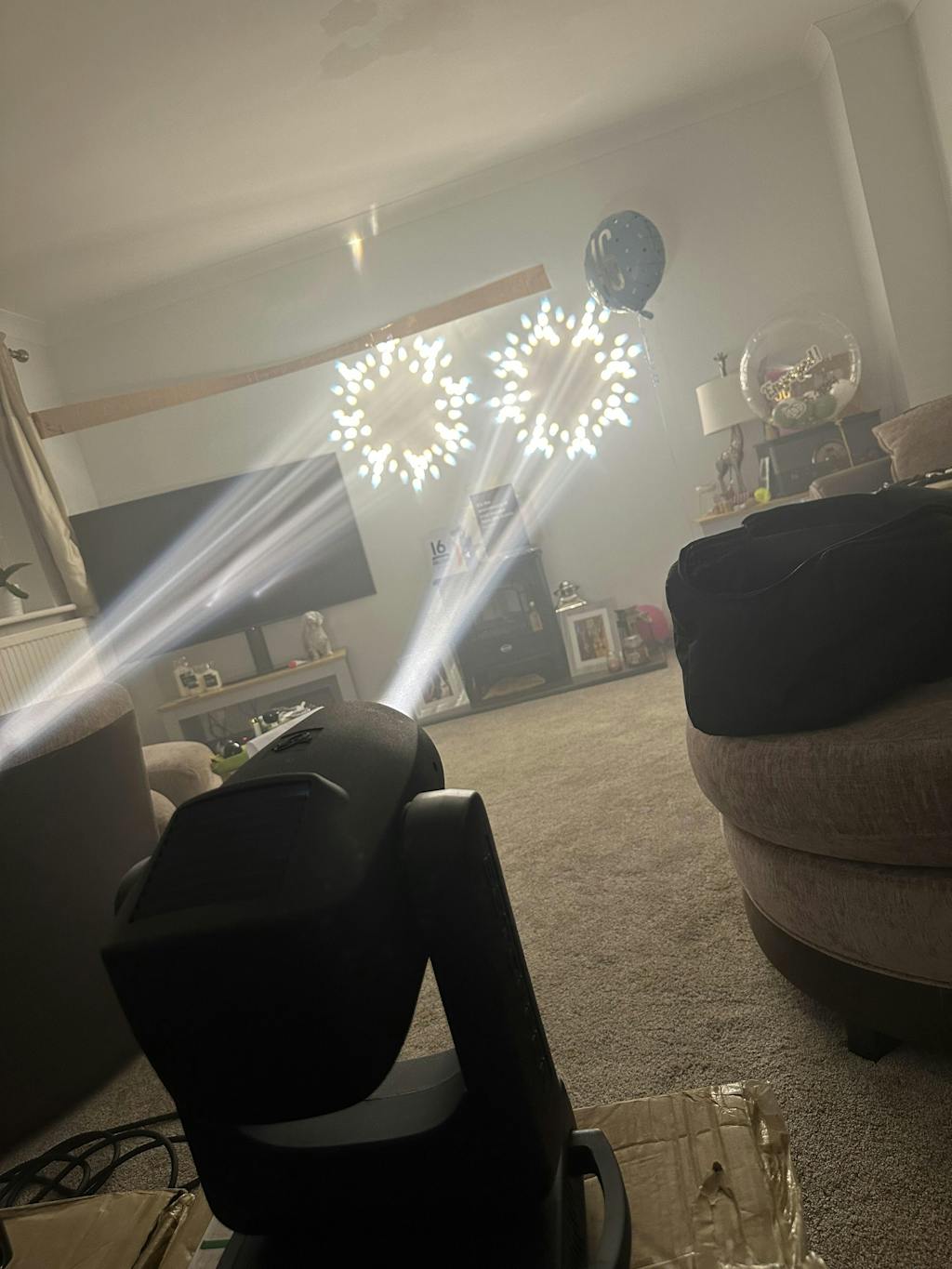 Beam lights are not designed for long-term static projection onto a single object or surface at close range. Prolonged exposure of high-intensity beams to the same area may cause overheating, discoloration, or surface damage to materials or objects in the illuminated area.