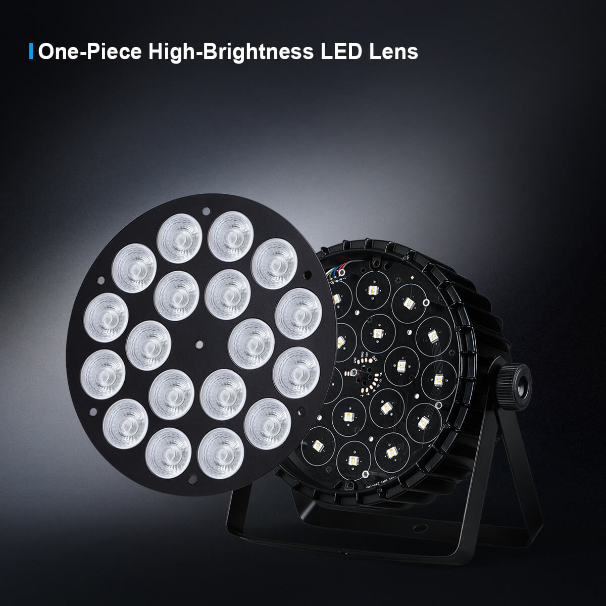 Equipped with a precision-engineered high-brightness LED lens, the LPC1818 delivers focused, intense illumination with minimal light loss. This all-in-one optical design ensures uniform beam distribution, enhanced output, and consistent color performance across the entire wash, making it ideal for stages, events, and live performances.