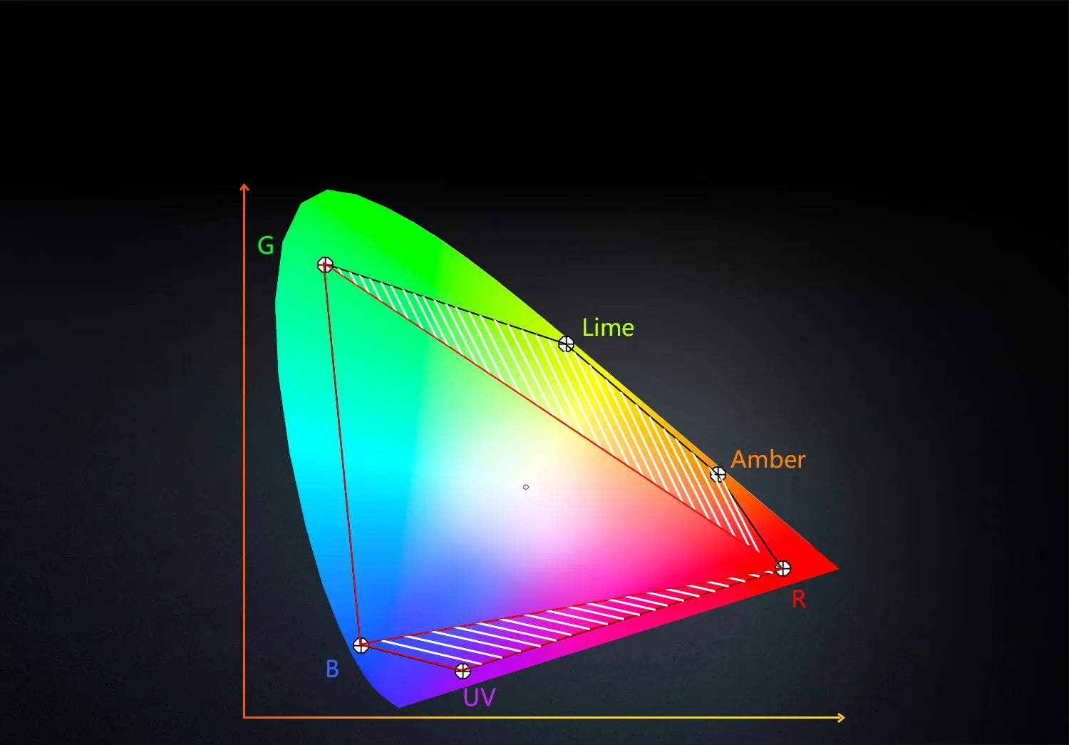 6-in-1 RGB+Amber, Lime & UV – Richer Colors, Instant Impact
