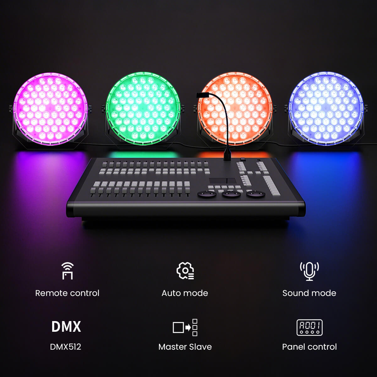 - Control Modes: DMX512 / Auto / Sound / Master-slave / Remote Control