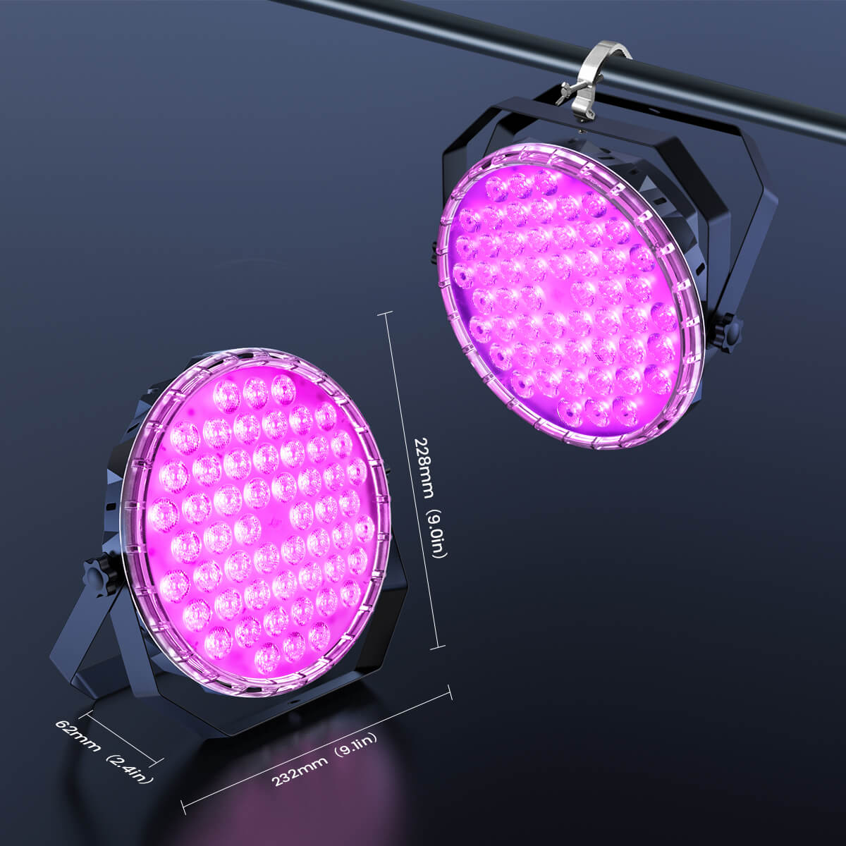Supports DMX512, Auto, Sound-Active, and Master/Slave modes. With 3CH & 7CH channels, you can control dimming, color, strobe, macro effects, and speed. Multiple units sync via Master/Slave, while built-in Auto and Sound modes enable quick plug-and-play for weddings, parties, and small shows.